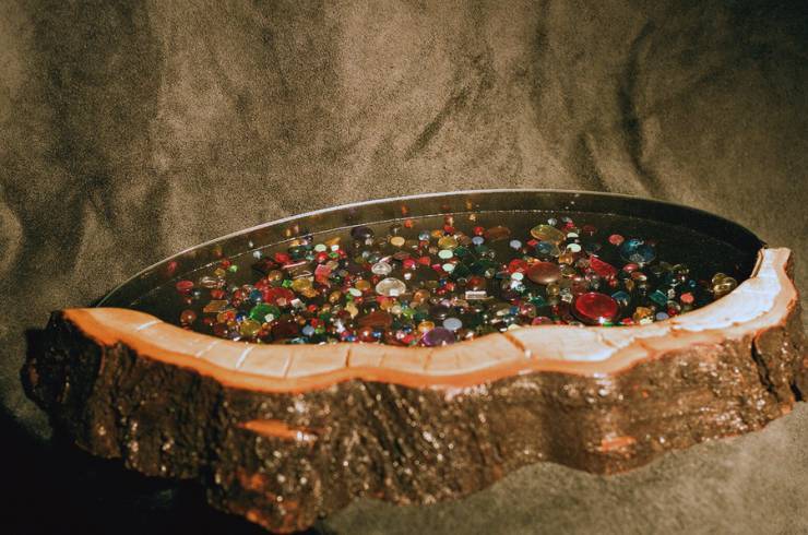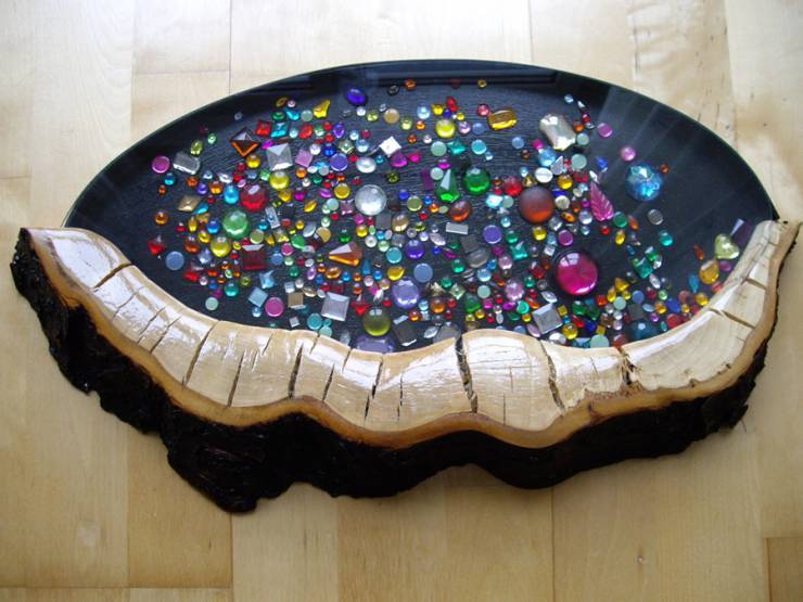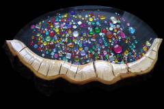 Pfütze 01/2010 Kirsche, Allebaum aus dem Weinviertel geformt, geschält, geschnitzt, geschliffen, lackiert Höhe ca 7cm, Länge ca 40cm Breite ca 20cm Willst Du begreifen, so geh auf den Grund. Schätze in der Pfütze.